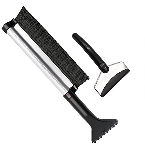 - Extendable Snow Brush: Designed with lightweight and strong retractable aluminium handle(17"-24") with snow remover on the bottom. Quality nylon brush can be used to remove snow, and you can shovel ice or snow with the bottom snow tool.